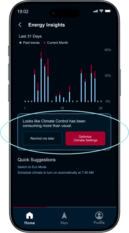 Our design aimed to leverage adaptive AI, predictive energy modeling, dynamic charging recommendations, and context-aware multi-modal interactions, to deliver an intuitive, and future-ready energy experience that empowers users through automation, real-time insights, and clear energy visualization.