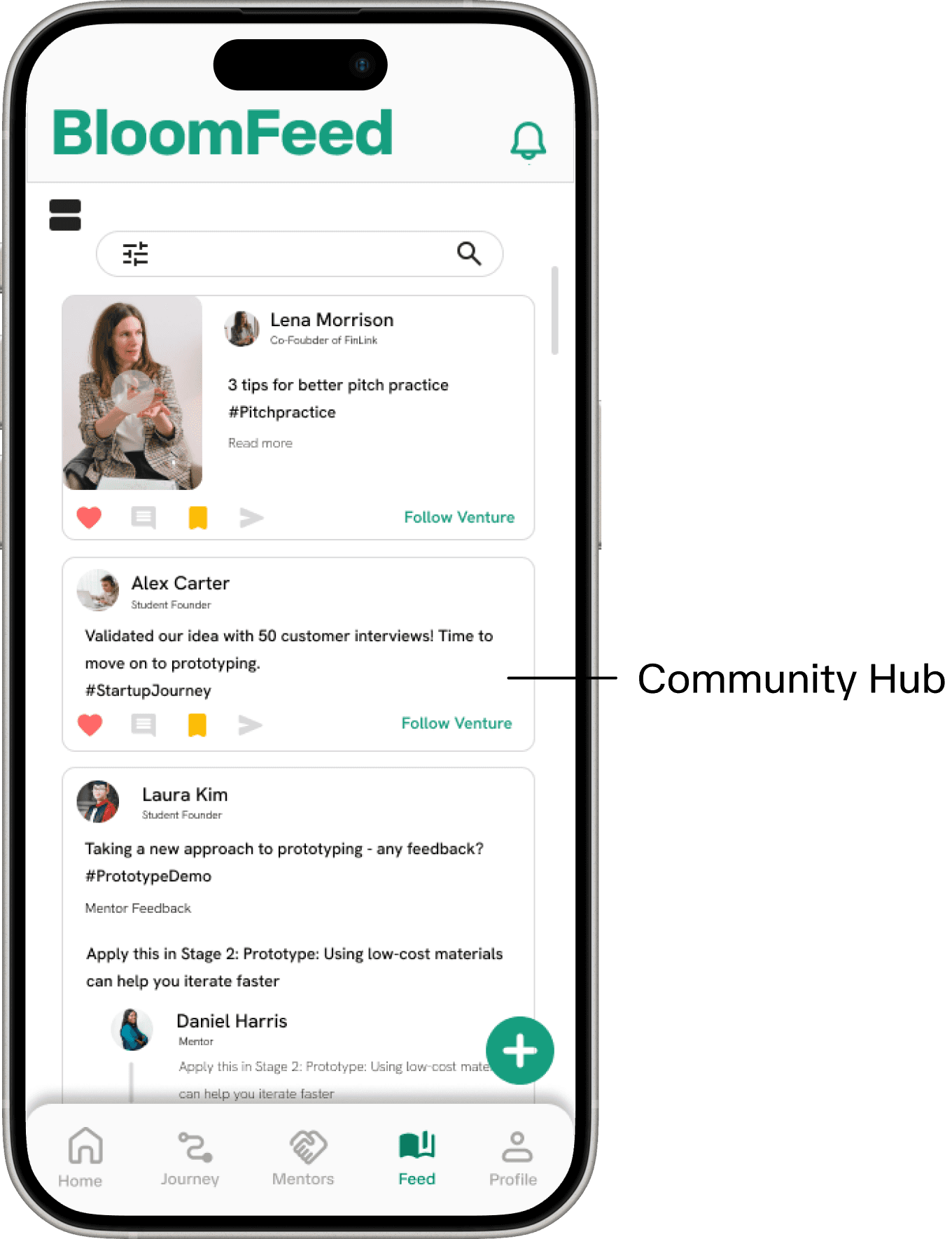 VentureBloom is a platform designed to support first-time entrepreneurs who have ideas but lack access to mentorship, resources, and early-stage guidance. This project explores how thoughtful product design and community-driven systems can lower the barrier to entrepreneurship by providing structured mentorship, peer support, and practical tools in one accessible space. Through VentureBloom, our team focused on designing an experience that empowers early founders to move from uncertainty to action, while fostering a collaborative environment that encourages learning, iteration, and sustainable growth.